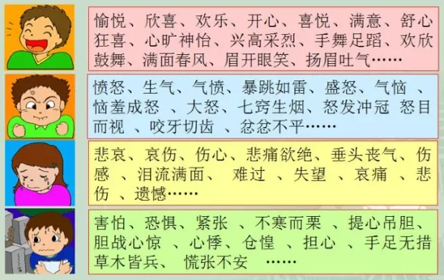 情緒的基本形式有喜悅、憤怒、恐懼、悲哀。