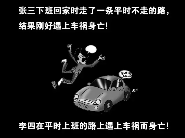 如:張三下班回家時走了一條平時不走的路,結(jié)構(gòu)剛好遇上車禍身亡;李四在平時上班的路上遇上車禍而身亡。哪種情況下事故死亡者家屬更可能感到悲傷?