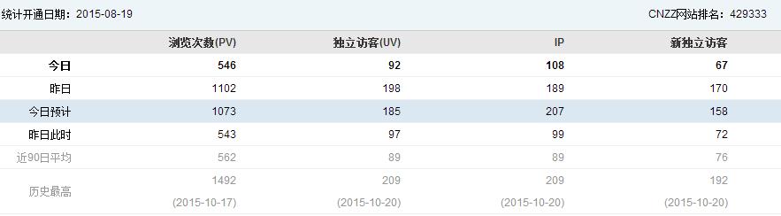 6天前,也就是10月20日,網(wǎng)站日均IP已經(jīng)突破200了。大家看圖,這是站長(zhǎng)統(tǒng)計(jì)工具的截圖。