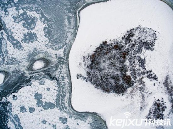 沒什么比垂直于地面,將大地被大雪覆蓋、銀裝素裹的樣子盡收眼底更好的表現冬季的形式了。不過我們也需要在構圖時考慮整體的“趣味性”,此時的“留白”其實與字面意思恰恰正相反,找一些不那么“白”的物體,為畫面增添一些變數。