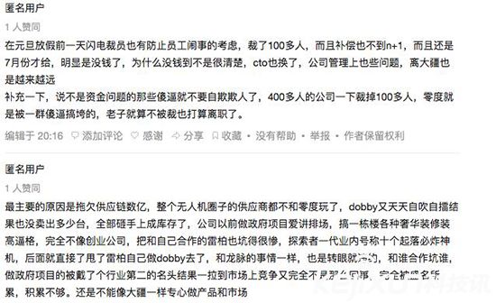 資本的青睞,也伴隨著規模擴張。據悉,零度智控在去年年初,人員一度翻倍增加到500多人,此次被裁員的員工數將近四分之一。更有離職員工爆料稱,自己是在毫不知情的情況下,被迫離職并被移出工作群的。