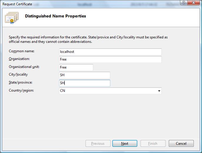 2.Create Certificate Request選項(xiàng)則提供了可自定義創(chuàng)建證書的方式,見下圖: