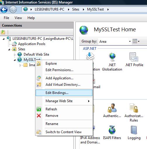 回到IIS,選中站點(diǎn),右鍵,選擇Edit Bindings,如圖: