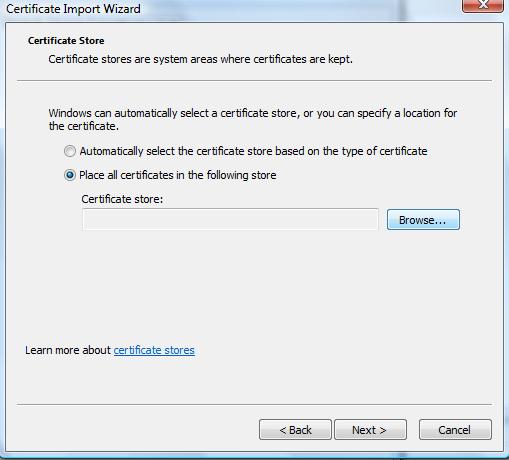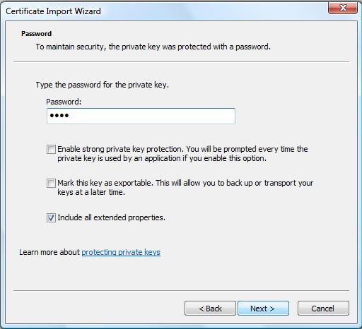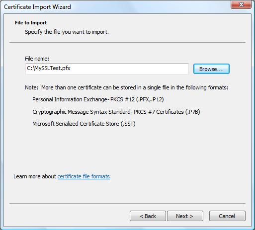 選擇我們剛剛保存的文件MySSLTest.pfx: