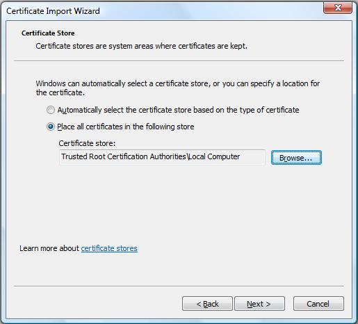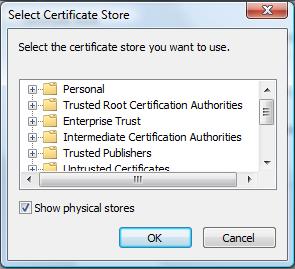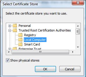 選擇上圖中的“Show physical stores”,并選擇“Trusted Root Certification Authorities”: