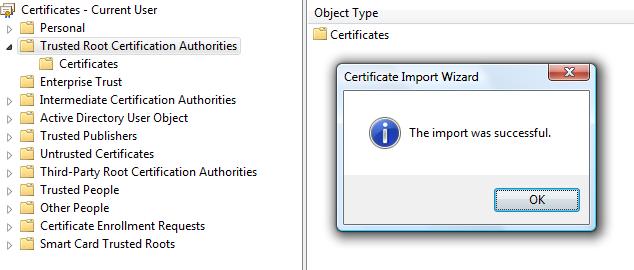 這時,我們打開Certmgr.msc,發(fā)現(xiàn)證書已成功導(dǎo)入。