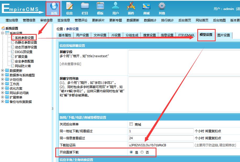 后臺——系統——系統參數設置——模型設置——開啟直接下載,如下圖: