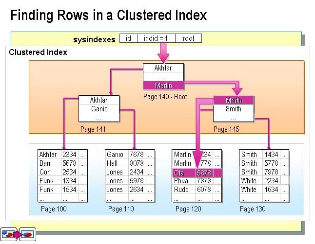 如圖,表中存放的數據是雜亂無章的,沒有按照姓名進行排序。我們將數據的姓名提取出來按照姓名創建一個非聚集索引。索引中姓名是排好序的,且索引所占用的空間遠遠小于表中數據所占用的空間,當我們查詢表中某條數據時候,將不再進行全表掃描,而對索引進行掃描,得到想要的數據再定位到表中具體的數據。 但是 在非聚集索引上,要掃描某個具體的姓名也得耗費一定的時間,進一步優化,在其上面在加一個Non-leaf level (非葉節點)可以B樹算法快速的定位。極大的提高了查詢速度