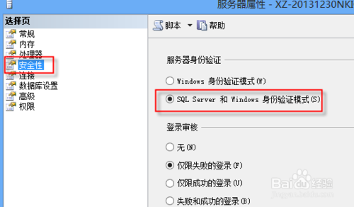 如果你沒有開通sqlserver身份驗證,首先windowns身份進(jìn)入管理系統(tǒng)開通