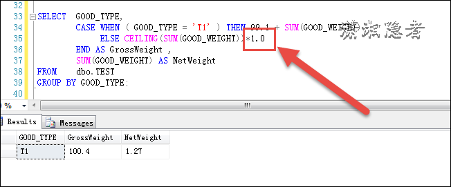 變成100了呢? 原始SQL非常復雜,我們分析、排除掉各個因素后,始終不得要領,各種折騰中發現,如果這樣轉換一下(請見下面截圖),居然就OK了,后面分析了一下,應該是CASE WHEN里面的不同數據類型導致隱式轉換,說實話之前還真沒有留意CASE WHEN中存在數據類型的隱性轉換,但是為什么就一定從NUMERIC轉換為INT了呢? 而不是INT隱性轉換為NUMERIC呢, 說實話沒有看到相關文檔的官方,如果按照官方文檔:
