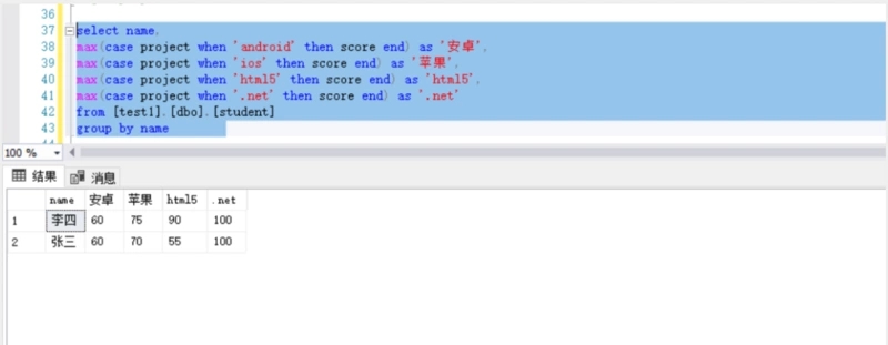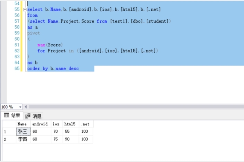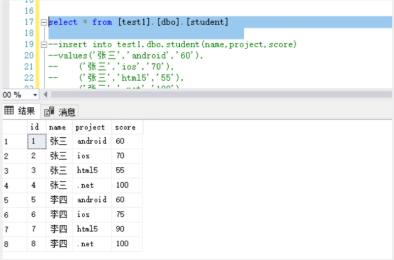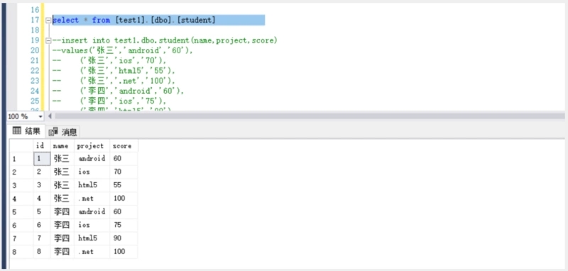 (select Name,Project,Score from [test1].[dbo].[student])