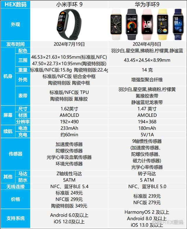 小米手環9和華為手環9是當前市場上備受推崇的兩款運動健康類智能手環。它們以全面的功能性、成熟的配置以及出色的性價比著稱。下面,HEX數碼就為大家挑選出最適合自己的手環產品。...
