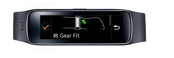 4.需要將充電座取出并將Gear Fit戴在手腕上,點擊“√”即可開始測量。