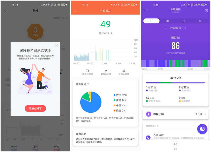 睡眠監(jiān)測方面,小米手環(huán)5加入了零星小睡模式,可以記錄午休的睡眠數(shù)據(jù)。同時(shí)支持REM快速動(dòng)眼期的監(jiān)測,根據(jù)睡眠期間的心率變異性、呼吸信息的變化規(guī)律作為參考,提供分析數(shù)據(jù),讓用戶了解自身的睡眠情況。