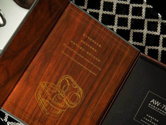 在我打開AW-76包裝的整個過程,這款產品完全不像是追求簡潔風格的數碼類產品,AW-76更像是一件經過精心包裝的禮物一樣,讓用戶在開箱的時候有非常大的滿足感,這才是一件優秀產品應該具有的素質,讓人無時無刻都在細微處感到惠威的用心和誠意。
