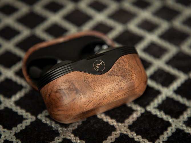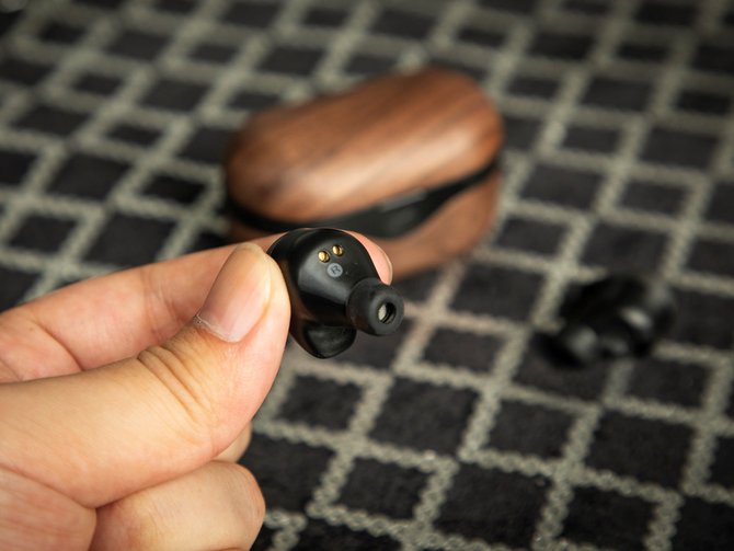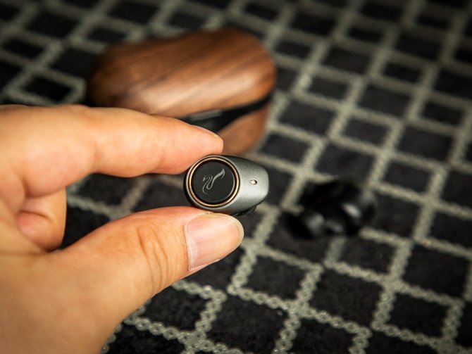 惠威AW-76的充電盒采用了源自美國黑胡桃原木材質,經過純手工的打磨,觸感溫潤,拿在手里遠非那些個塑料材質可以媲美的,同時胡桃木的花紋也非常的好看,不管是顏值還是質感都非常的出眾,整個充電盒的外觀比較小巧,非常適合隨身攜帶。