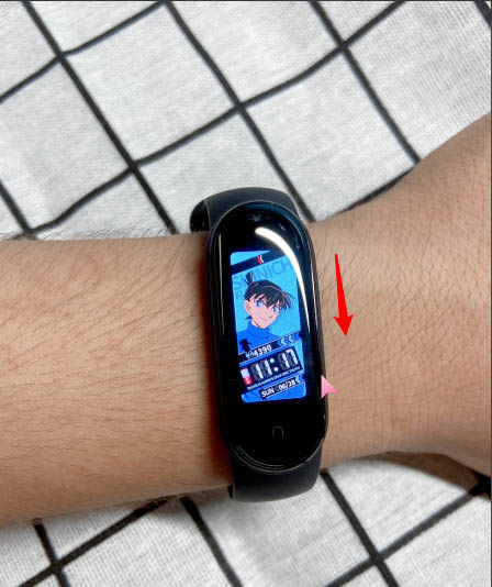 1、自定義勿擾模式需要在手環設置。點亮手環屏幕后,向下滑動。