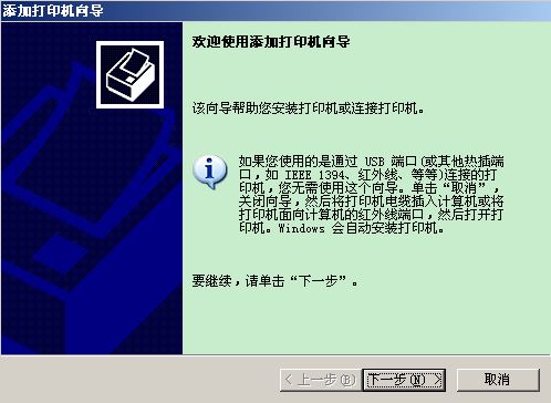 2.在彈出的打印機(jī)安裝向?qū)Т翱谥校檬髽?biāo)單擊“下一步”按鈕,如下圖所示。