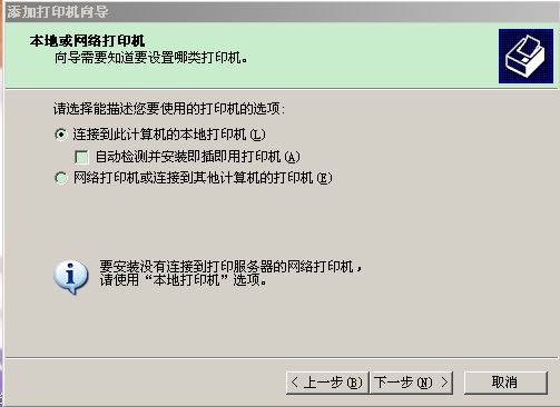 3.選擇安裝的打印機(jī)類型。用鼠標(biāo)單擊“下一步”按鈕,如下圖所示。