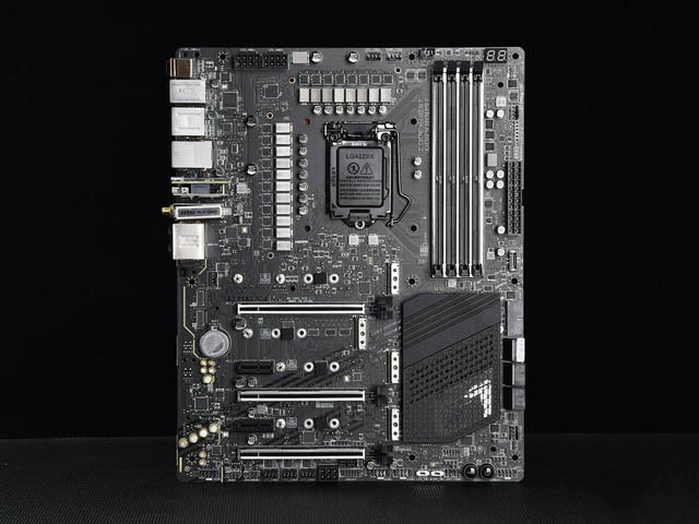 微星MEG Z590 ACE戰神主板這次依舊采用了戰神系列的經典黑金配色,以往是采用金色線條來點綴,這次則是將金色元素與LOGO相互融合,設計語言更加相較以往更加冷冽。而且可以看到正面的重要主板發熱源全部覆蓋了厚實的金屬裝甲,輔助硬件進行散熱。