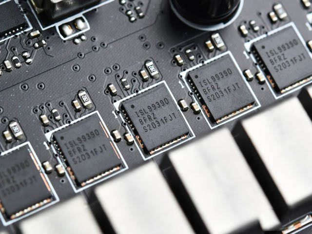首先咱們來看一下供電,微星MEG Z590 ACE戰神主板采用了16+2+1相的供電設計,PWM主控使用了ISL69269,MOS為ISL99390,Dr.Mos設計,可單相輸出90A的電流,非常強大。