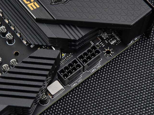 CPU供電為雙8Pin,并且使用了實心針設計。
