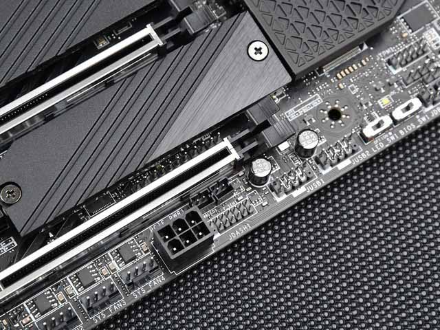 主板底部還有額外的6Pin PCIe 強化供電接口,也是微星高端主板的標配了。