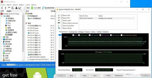 最后我們對(duì)微星MEG Z590 ACE戰(zhàn)神主板和進(jìn)行酷睿i9-11900K拷機(jī),使用AIDA64這款軟件進(jìn)行FPU和CPU雙拷,看一看高負(fù)載時(shí)微星MEG Z590 ACE戰(zhàn)神主板能不能頂住酷睿i9-11900K處理器的壓力。