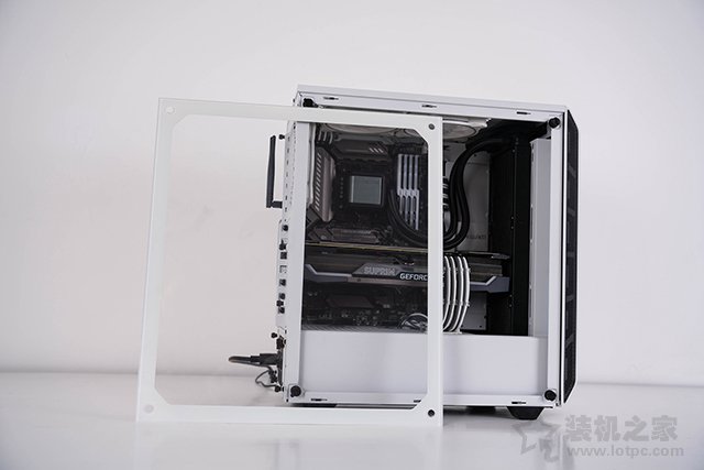 側透設計是為了更好的適應現(xiàn)在主打燈效氛圍的裝機需求,搭配上整個箱體的白色為主,黑色為輔的拼色處理,再加上大面積的側透玻璃,完全可以把主機左側的硬件光效輸出發(fā)揮出來,這就是顏值擔當?shù)囊幻妗?/p>