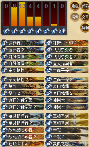 神恩騎的取勝方式相比于上面兩位就顯得規矩了很多,靠的是站場與解場,在場面、卡差、血量都有優勢的條件下穩定取勝。這套牌的控場能力可以說強大的連他自己都害怕,只要稍加訓練就能很輕易地hold住場面,剩下的就是看對手掙扎了,不過這套牌也有缺點,及缺少爆發,一旦沒有了場面優勢也容易被對方吊打。