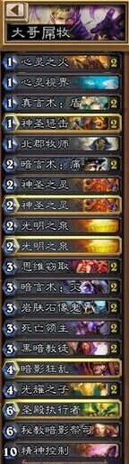 暫時還沒有測試過天梯,月初這段時間牧師任務都用這套牌在休閑模式混跡,勝率大致70%左右,關鍵是能夠感受到一發草臉的爆炸傷害。