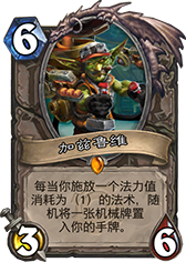 奇跡牧并不像奇跡賊那樣擁有眾多的解場(chǎng)型法術(shù),雖然有痛和滅在手,但是還是解場(chǎng)手段還是比較緊缺。前期主要依靠炎術(shù)士配合神圣懲擊或者真言術(shù)盾等造成AOE傷害進(jìn)行解場(chǎng),這一點(diǎn)有點(diǎn)類似于環(huán)牧,但是中后期的手段就顯得乏力了。這時(shí)候就需要場(chǎng)面上有隨從站場(chǎng),加茲魯維是個(gè)非常適合奇跡牧師的隨從,它既可以補(bǔ)充手牌,又可以補(bǔ)充隨從,大量的機(jī)械隨從意味著不錯(cuò)的身材或者是不錯(cuò)的零件,注意一下零件也是1費(fèi)的法術(shù)哦,所以只要保護(hù)好加茲魯維你的手牌和隨從就會(huì)源源不斷,場(chǎng)面上的交換也會(huì)越來(lái)越占有優(yōu)勢(shì)。當(dāng)然,對(duì)手肯定會(huì)不顧一切的去解除加茲魯維,這一點(diǎn)也就給了加基森生存的空間,兩者之間有互相保護(hù)的巧妙平衡。