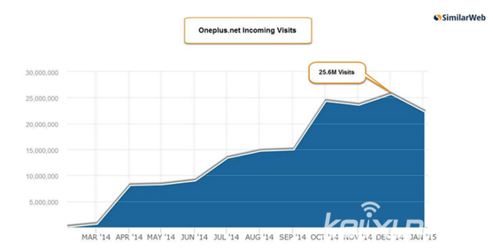 TNW認為一加手機的營銷策略的成功主要有三大因素:第一是性價比高,價格低但是配置高,一加并沒有因為成本犧牲質(zhì)量;第二是邀請制的銷售模式,它使得廠商可以根據(jù)市場需求逐步加大產(chǎn)能,也使得消費者對這款“想要而得不到”的產(chǎn)品更加期待;第三是一加手機的用戶更多是集中在科技極客中,他們的認可讓這款科技產(chǎn)品的口碑傳播更有力度。這種創(chuàng)新的營銷策略成功引起了市場對這款智能手機的追捧與需求,一加官網(wǎng)的流量急速增長并于2014年12月達到了2560萬次訪問量,而此時距離一加官網(wǎng)上線僅一年時間。