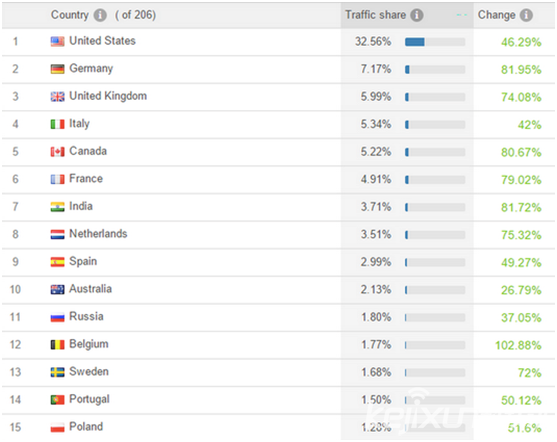 為一加官網(wǎng)貢獻流量最多的15個國家