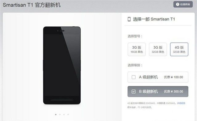 錘子官翻機根據瑕疵程度分為A、B兩個等級出售