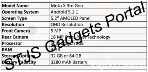 據手機中國報道,在三星、LG、htc等多款旗艦機大熱的時候,摩托羅拉旗下的Moto系列如今也有了新消息。根據國外網站STJSGadgets報道,有消息人士曝光了摩托羅拉下一代旗艦機Moto X第三代的配置信息,我們一同來看一下。