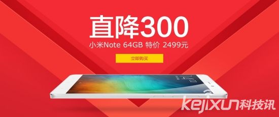 據機鋒網報道,5月14日小米公司官方微博上宣布,小米Note標準版(64GB)移動、聯(lián)通雙網通直降300元,調整價格到2499元。用戶無需預約搶購,可通過小米官網、小米天貓旗艦店以及小米商城APP直接下單購買,7天內發(fā)貨。降價前10天內成功購買小米Note(64GB)的用戶可領取1張300元現金券。