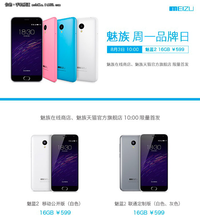 【 什么值得買】7月29日魅族在北京召開了發布會發布了魅藍2,魅藍2在外觀方面相比于上代魅藍進行了調整,沿用了全新體驗的mBack鍵,更像是縮小版的魅藍note2,在硬件方面配備2GB RAM+16GB ROM的存儲組合,后置1300萬像素攝像頭但是售價僅為599元!成為了該機最大的亮點,進一步拉低了智能手機的價格。魅藍2將于今日10:00點在魅族在線商店以及魅族天貓官方旗艦店限量首發,僅限已預約用戶,之前忘記預約的朋友仍可在9點之前進行預約。