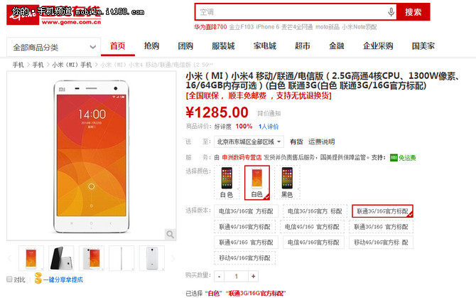 小米將于明日發(fā)布小米4c用來填補(bǔ)小米5發(fā)布前的這段斷檔期,回顧一下小米4目前的行情來說,該機(jī)已經(jīng)跌到了歷史冰點(diǎn),3GB大內(nèi)存聯(lián)通3G網(wǎng)絡(luò)版本僅售1285元,非常超值。如果你需要4G網(wǎng),那同樣是3GB大內(nèi)存的移動4G版則報價1518元,相比小米官網(wǎng)1799元的價格優(yōu)惠了二百余元。隨著wifi在國內(nèi)的普及,以及對于3G信號更好的聯(lián)通用戶來說,4G網(wǎng)絡(luò)也變的不那么重要了。因此聯(lián)通3G版仍是目前小米4性價比最高的版本。