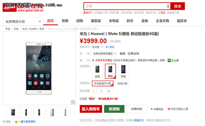 直達鏈接:全金屬機身+指紋識別 直降二百 華為Mate S現貨3999元【點擊查看詳情】