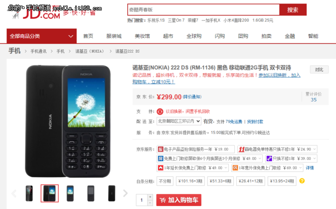 諾基亞在今年中的時候悄悄發布了功能機諾基亞222,延續了超長待機的特性,支持簡單的上網功能,相比于此前的諾基亞215在攝像頭方面升級至200萬像素。目前該機已經登陸國內市場,今日也已上架京東商城,售價299元。...