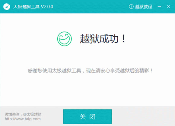 5.越獄完成后,設備會自動重啟,越獄工具會提示“越獄成功”。