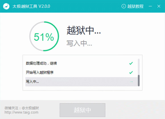 4.接著越獄工具會自動執行,在此過程中,請勿進行任何操作,只需耐心等待工具提示“越獄成功!”即可。
