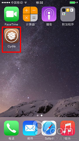 6.打開設備,屏幕上出現Cydia圖標,這時請保證你的蘋果設備連接網絡正常(即能上網狀態),然后打開Cydia,Cydia自動載入一段時間后,設備會自動注銷重啟。再次打開Cydia,你會看到最新的Cydia版本。