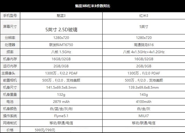 魅藍3和紅米3對比評測 誰是百元機王者?