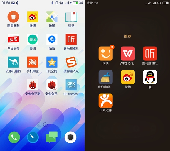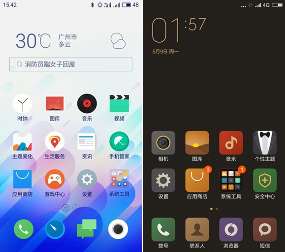 ▲系統界面(左:魅藍3 右:紅米3)