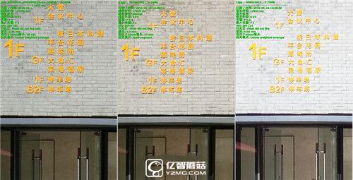 在這組地下車庫(kù)當(dāng)中,小米5很明顯受到算法的限制,它的樣張表現(xiàn)出一些很粗劣的處理痕跡,如果不放大看還好,放大后則會(huì)讓人有一種噪點(diǎn)很多的錯(cuò)覺,實(shí)際是算法處理的誤傷。而華為P9則是有些涂抹過(guò)度,綠色墻紙的白色字體都差點(diǎn)要被涂掉,而魅族PRO6的表現(xiàn)雖然也稱不上好,但是要明顯好于其它兩臺(tái)手機(jī)。