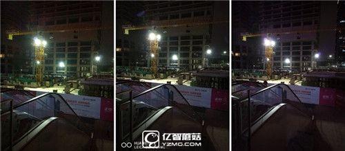在這組工地的極度弱光場(chǎng)景中,小米5、華為P9、魅族PRO6都出現(xiàn)了不同程度的眩光現(xiàn)象,魅族PRO6的情況最為嚴(yán)重,而且魅族PRO6在該場(chǎng)景中整個(gè)畫面都偏紫,唯一的有點(diǎn)就是噪點(diǎn)處理要好于小米5。小米5在這個(gè)場(chǎng)景表現(xiàn)也十分吃力,彩噪、光斑、解析力下降各種問(wèn)題。表現(xiàn)最好的是華為P9,畫面明顯要比小米5、魅族PRO6更加純凈,噪點(diǎn)控制的優(yōu)勢(shì)十分明顯。