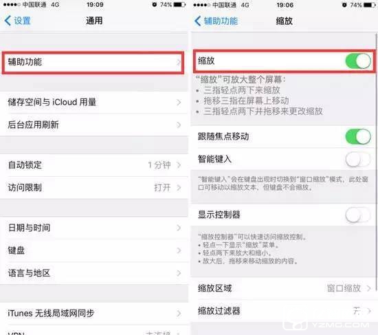 設置方法:在設置中,找到通用,點擊“輔助功能”,將“縮放”功能開啟即可。