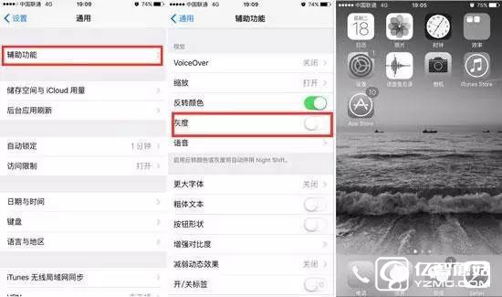 設置方法:在設置中,找到通用,點擊“輔助功能”,將“灰度”功能開啟即可。